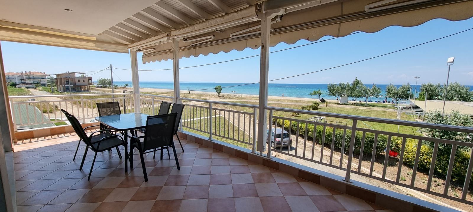 Куќа „La Plage“ е лоцирана во новиот дел на Неа Флогита, прва линија море, на сама плажа. Располагаме со високо квалитетни 3 четирикреветни студија, 2 четирикреветни апартмани и 2 дуплекс апартмани (сите со директен, отворен поглед на море). Сите соби располагаат со големи тераси, комплетно опремена кујна, ЛЦД ТВ,  реновирани нови тоалети и комплетно опремени кујни. Интернетот, климата и сет пешкири се вклучени во цената. Паркинг простор обезбеден пред вилата. Пред вилата има кафе бар со лежалки во кој нашите патници имаат поволности. Вилата располага со 2 дополнителни помошни кревети, како и 2 креветчиња за бебе (се добиваат бесплатно по принцип на прва резервација). Куќата е повеќе години во нашата понуда и е добро позната на нашите патници.