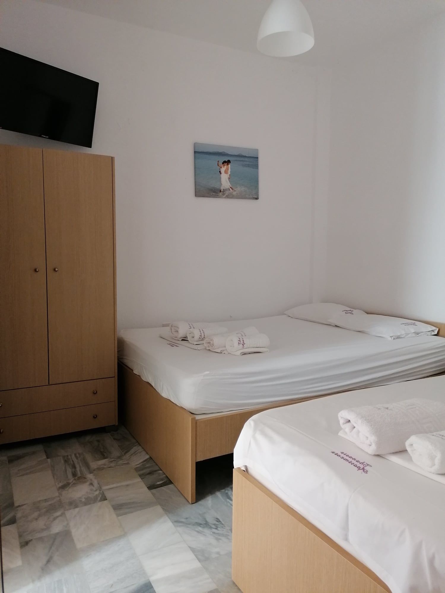 1/3+1 Апартман бр. 19 – втор кат. Апартманот има две простории кои меѓу себе се одделени со врата. На самиот влез во апартманот се наоѓа климата. Во првата просторија има еден стандарден единечен кревет (димензии 190-90 см) и комплетно опремена кујна во која има мини шпорет со рерна, голем фрижидер со одделна комора и комплет садови за готвење и јадење. Во другата просторија има еден брачен кревет (димензии 192-140 см) и еден единечен кревет (димензии 180-82 см). Опремен е со квалитетен мебел, фен и телевизор. Терасата е со нормална големина, опремена е со пластична маса и столчиња и има поглед на задниот дел на вилата, кон друг објект. Има простран тоалет со туш.