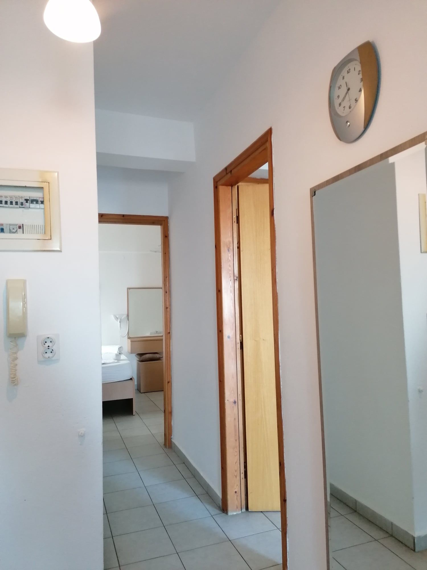 1/6 Дуплекс апартман бр. 29 – втор кат. Дуплекс апартманот има три простории, од кои две се посебно издвоени спални соби со врати и посебна кујна што се наоѓа во средина меѓу двете соби. Во секоја спална соба има по еден стандарден брачен кревет (димензии 190-140 см) и еден стандарден единечен кревет (димензии 190-90 см), мебел, фен и телевизор во секоја спална соба. Од едната спална соба се излегува на голема пространа тераса со директен фронтален поглед море, опремена со пластична маса, столчиња и тенда а и од другата спална соба исто така има уште една помала тераса која гледа кон улица. Во средината меѓу двете спални соби има пространа комплетно опремена кујна во која има голем шпорет со рерна, аспиратор, голем фрижидер со одделна комора и комплет садови за готвење и јадење. Тука се наоѓа и клима уредот. Од кујната се излегува на истата тераса која продолжува кон едната спална соба. Дуплексот располага со сопствен стандарден тоалет со туш.