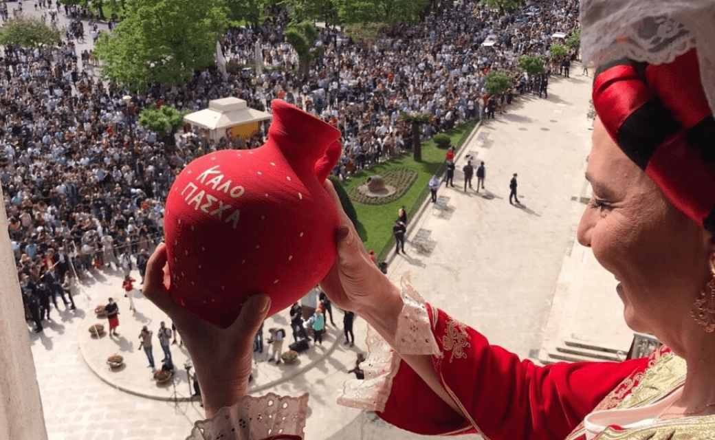 За што е овој обичај? Луѓето фрлаат големи глинени садови полни со вода од нивните балкони, додека толпата го гледа спектаклот и филхармонијата на островот како играат религиозни маршеви. Овој обичај потекнува од венецијанската окупација, кога луѓето ги фрлале своите стари работи од балконите во новогодишната ноќ, очекувајќи од новата година да им донесе нови работи. Според други, овој обичај потекнува од античко време, кога луѓето во април ги фрлале старите глинени стомни, за да ги наполнат новите со овошје. Трето објаснување за овој обичај е дека има паганско потекло и дека со вревата направена од кршењето, Античките Грци сакале да ја разбудат Персефона, божицата на пролетта и да го забрзаат нејзиното доаѓање. Обичајот е да се земе парче од скршените глинени садови и да се сочува за среќа и здравје до следната година. Филхармонските групи се враќаат на улиците и почнуваат да свират весела музика. Како и да е, сè уште е многу популарен обичај на Крф! Во исто време, обичај, наречен „Мастела“, се одржува во областа Пинија, во центарот на градот на Стариот град. Покрај патот е поставено големо буре полно со вода. Секој што поминува треба да фрли паричка во неа. Кога ќе се случи „Првото воскресение“, се избира случајно лице кое минува да биде фрлено во бурето, за да ги собере монетите од неговото дно. По настаните враќање Слободно време за одмор и индивидуални активности.Во вечерните часови, поаѓање кон градот за проследување на последниот дел од традиционалната прослава, односно Христовото воскресение. На полноќ, илјадници луѓе се собираат на градските плоштади и го прославуваат Христовото Воскресение. Ноќевање.